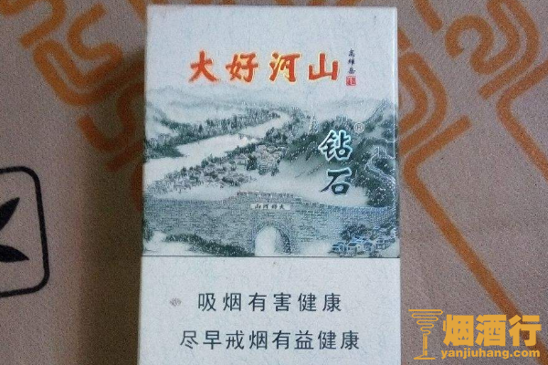 钻石(大好河山)的包装以白色为主,正面印有水墨画的图案,其味道香醇,烟气饱满,带有一定的后劲,给人的满足感很强,是一款很不错的产品。