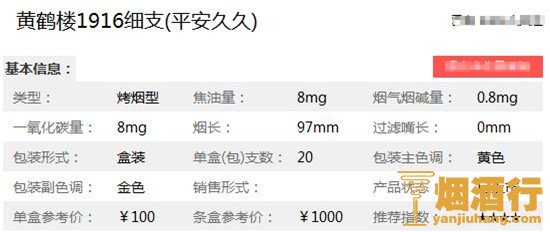 黄鹤楼香烟价格核心参数: