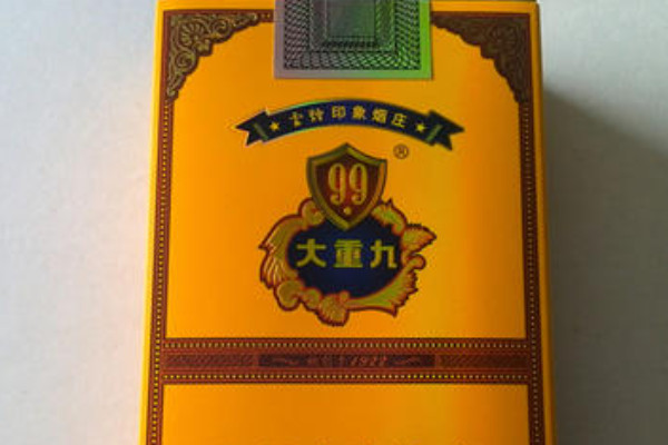 云烟(细支大重九)在外观印刷上没有什么改变,其黄色盾牌和花边衬托“大重九”文字,简约大气,但又不失豪华端庄。