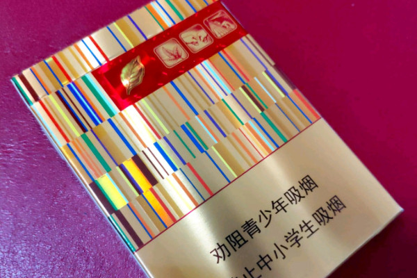 黄金叶(黄金中支)的包装以金色为主,正面有很多彩色的竖状条纹,右上部分是红色背景的金色烟草图案,入口辛辣,味道清淡复杂,性价比不高,不建议烟量少的消费者购买。