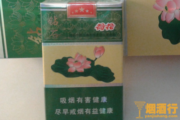 钻石(一品荷花)的包装采用了三段式设计,上下部分为绿色,中间为黄色,正面印有荷花图案,其口感顺滑,烟气较淡,给人一种非常清新的感觉。