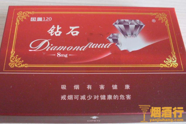 钻石(硬红120)的包装非常的精致,采用了红褐色作为底色,看起来十分典雅,但味道就比较差了,其烟气过于寡淡,焦油含量较低,抽完之后还会出现口干的情况。
