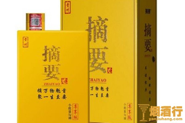 摘要酒属于高档白酒,是金沙酒业推出的酱香型白酒系列,运用中国传统大曲酱香回沙工艺,以微量元素丰富的河水酿造而成,酿造时长超过30年,而且摘要酒的包装多样化,有礼盒装、尊享版等多个版本,适用于多个场合。