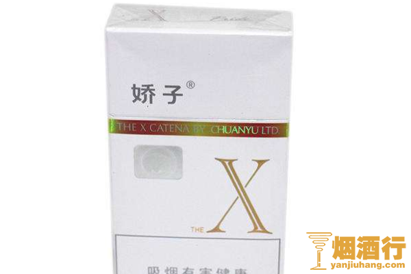 娇子(X)的包装简约大气,采用白色作为底色,正面印有金色的条纹和字样,其味道香甜,烟气较淡,带有一股橘子香气,给人一种十分凉爽的感觉。