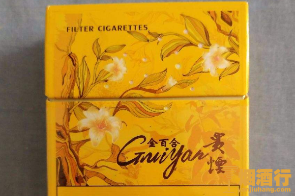 贵烟(金百合)的包装十分精美,采用了黄色作为底色,正面印有漂亮的百合图案,其焦油含量较低,味道较淡,带有一股独特的花香味,但抽完之后容易口干。