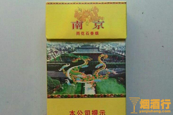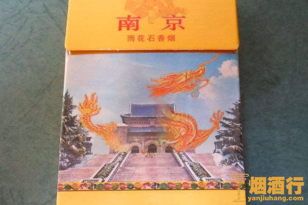 南京(雨花石)的包装采用了三段式设计,颜色以黄色为主,正面中间印有风景画图案,其味道香醇,劲道较弱,抽起来非常的舒服,但是燃烧速度较快,批发价为456元一条。