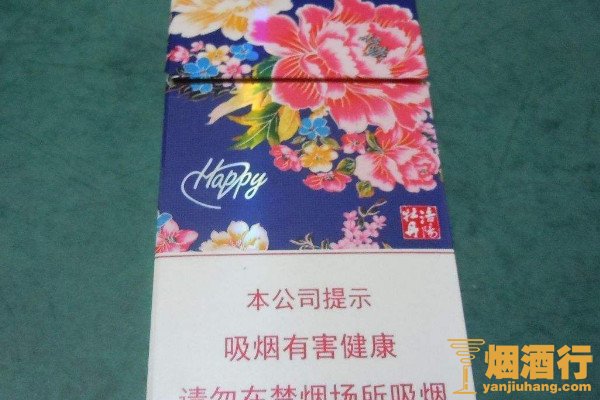 黄金叶(洛阳牡丹细支HAPPY)是一款以烟草本香为主的产品,其口感柔和,烟气细腻,回味干净,有着非常好的吸食体验,而且包装上印有牡丹图案,看起来十分精致。