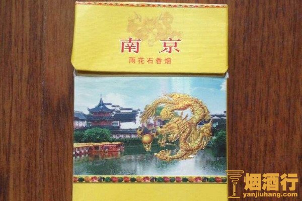 南京(雨花石)的包装采用了黄色作为底色,正面印有龙纹图案和风景画照片,其味道香浓,烟气纯正,很适合烟瘾不大的烟民,燃烧速度较快。