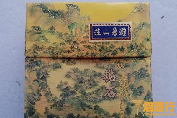 钻石(避暑山庄)的包装以黄色为主,正面印有绿色的风景画,其味道香甜,烟气清淡,抽起来非常的舒服,且焦油含量较低,很适合烟瘾较小的烟民。