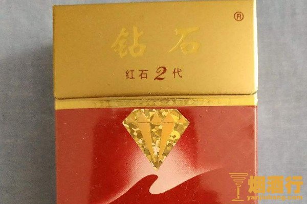 钻石(红石2代)是一款性价比很高的香烟,包装以金色和红色为主,正面印有钻石标识,其口感柔顺,烟气纯正,后劲较足,很适合老烟民。