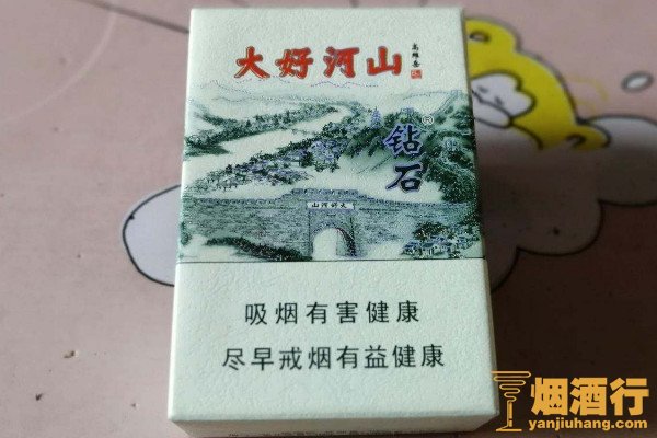 钻石(大好河山)的包装以白色为主,正面印有水墨风的图画,但口感较为一般,劲道较弱,不太适合老烟民,性价比还可以,适合喜欢淡雅香气的烟民。