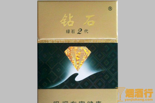 钻石(绿石二代)是一款销量非常好的产品,包装以金色和绿色为主,正面印有钻石图案,其平顺,味道纯正,烟气饱满,且价格实惠,有着较高的性价比。