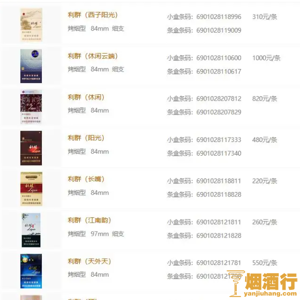 作为浙江中烟的代表品牌,利群香烟成立于1960年,是商务部认可的烟草行业唯一的中国历史品牌。现有利群(新版)、利群(硬)、利群(休闲)、利群(阳光)等香烟产品深受消费者喜爱。香烟网整理了利群香烟价格表和利群香烟的相关介绍,