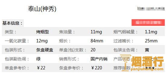 泰山烟神秀多少钱一包 最新泰山神秀升级版价格22元/盒