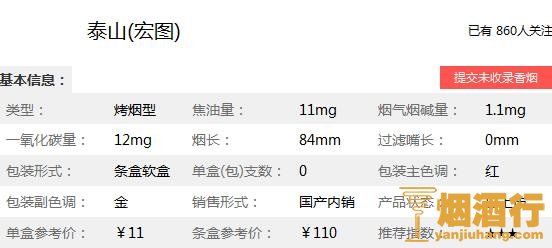 泰山宏图多少钱一包 泰山宏图烟价格11元/包