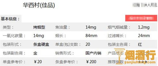 华西村香烟核心参数: