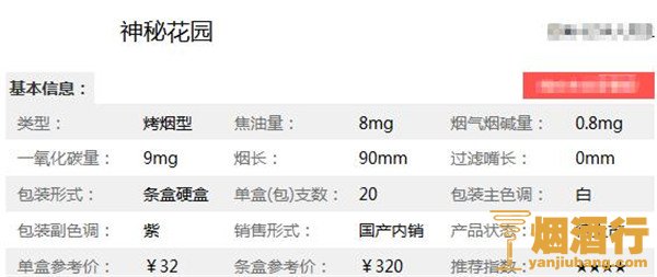 在了解了2018云烟神秘花园多少钱一包之后,为了大家能更详见的了解此烟,小编特意将云烟神秘花园细支香烟核心参数进行了整理,以便于对它进行更深入的了解。