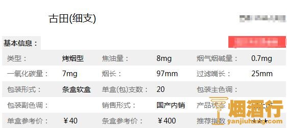 古田香烟核心参数: