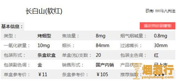 长白山香烟核心参数: