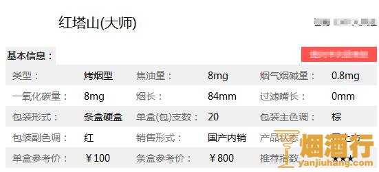 在了解了2018红塔山大师香烟多少钱一包之后,为了大家能更详见的了解此烟,小编特意将红塔山香烟核心参数进行了整理,以便于对它进行更深入的了解。