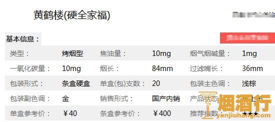 2018黄鹤楼香烟多少钱一包,黄鹤楼全家福价格40元/包