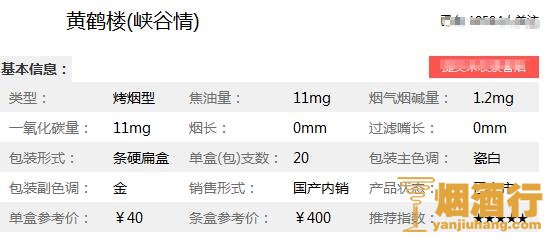 黄鹤楼香烟核心参数: