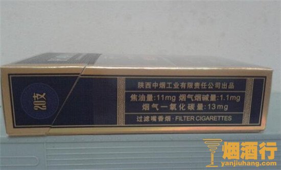 包装:外包装采用纯蓝底色烫金印刷工艺,辅以最流行的光柱镭射卡纸包装,温变防伪技术,蓝金色相配,整体颜色搭配非常和谐,给人靓丽高贵感观效果。内衬纸采用金色铝箔纸,以精细压花工艺精心包装而成,高贵典雅之气尽显。烟支设计普实,却又显精致。