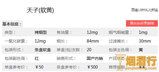 2018天子软包多少钱,天子(软黄)香烟价格表图