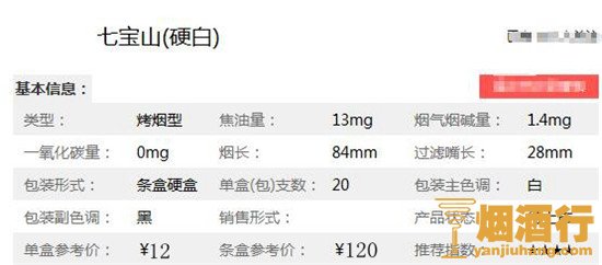 七宝山香烟核心参数: