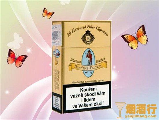 通过上面的介绍,大家对英国Sunday's Fantasy(假日)香烟多少钱一包以及假日香烟价格都了解了,它在加香型外烟中算十分出彩的,喜欢加香型烟的烟友,有机会可以试试。