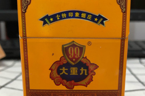 云烟(细支大重九)在外观印刷上没有什么改变,其黄色盾牌和花边衬托“大重九”文字,简约大气,但又不失豪华端庄。