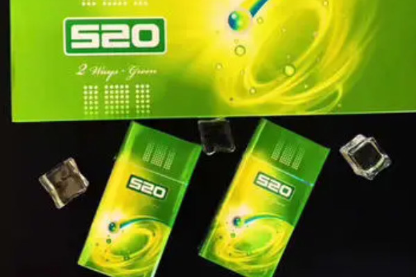 520(哈密瓜爆珠)烟盒呈绿色,给人一种清凉的感觉,而且烟味也带有果香风味,烟嘴镂空爱心设计,非常适合夏天抽。