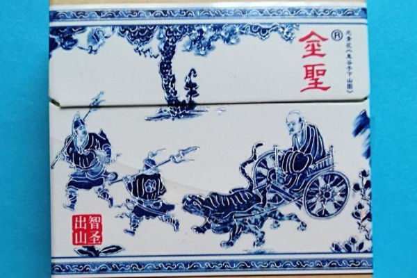 金圣(智圣出山)以青花瓷风格展现鬼谷子下山的场面,非常简洁明了,香烟烟气醇厚平顺,捏碎爆珠后浑浊有力。