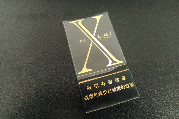 娇子(X玫瑰)以黑色为主色调,包装正面印有醒目的X字母,字体为金色,且烟草中混合有玫瑰花香的味道,烟味清新芬芳。