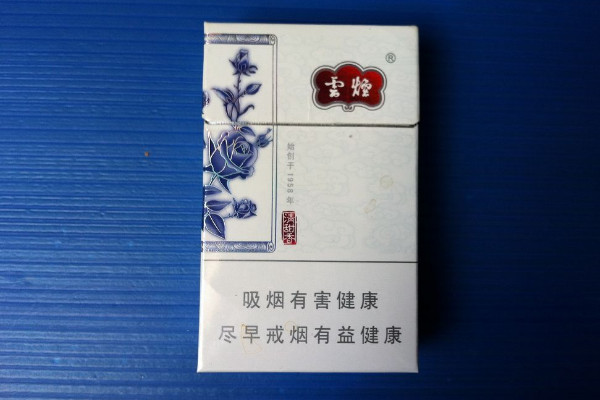 云烟(青花瓷)外包装以白色为底色,蓝色为副色,打造青花瓷风格,且香烟入口有一股清甜味道,回味悠长。