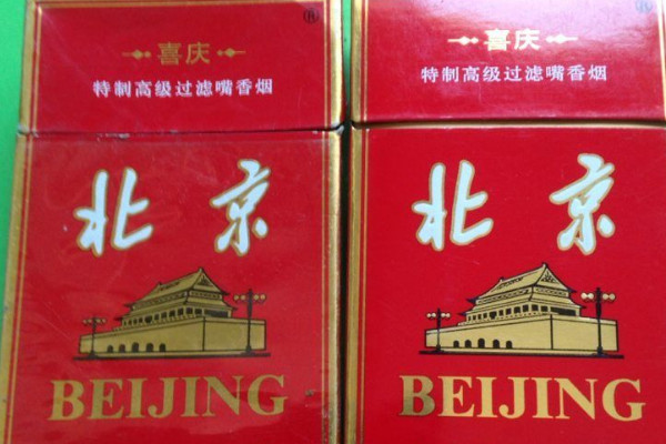 北京(红)香烟以红色为主色调,四周有金色花边,正面印有天安门图案,看上去喜庆吉祥,且香烟采取优质烟叶制成,口感较呛,烟味较淡。