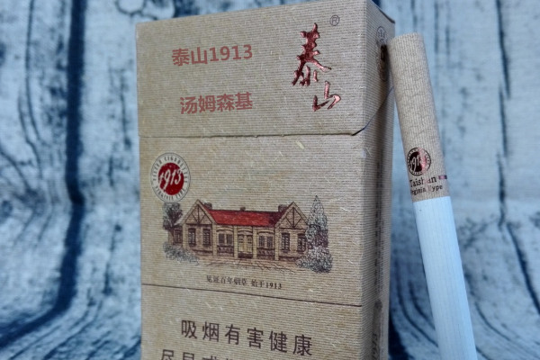 泰山(1913)采取流行的再生纸包装,烟盒正面印有红色楼房的图案,风格新颖精致,而且香烟口感丰富,烟香清淡,刺激感较弱。