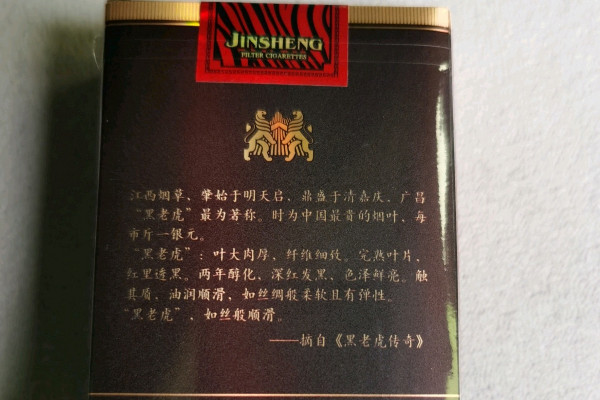 金圣(黑老虎)采取黄色硬盒包装,正面印有古风建筑图案,风格复古且精致,而且香烟中带有一丝西洋参的味道,口感柔和,烟气纯粹。