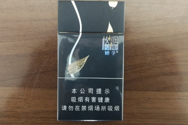 娇子(格调细支)包装设计以黑金色为主色调,正面印有满版的冰花,质感厚重,风格简约时尚,而且香烟刺激感较强,入口有辣感,回味发苦。