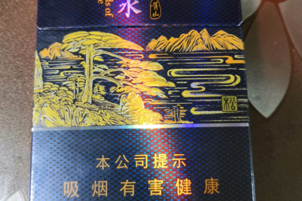 黄山(天都高山流水)包装以蓝色为主色调,在烟盒上印有金色的山水图案,整体风格古典高雅,而且这款香烟在市场上很难买到,是烟厂给高端客户限量供应的。
