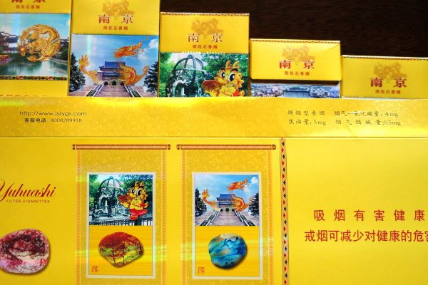 南京(雨花石)的包装设计十分新颖,以黄色为主色调,在烟盒上印有南京标志性的建筑图案,且具有五种不同的包装,烟支的口感醇香怡人,细腻绵长,余味干净舒适。