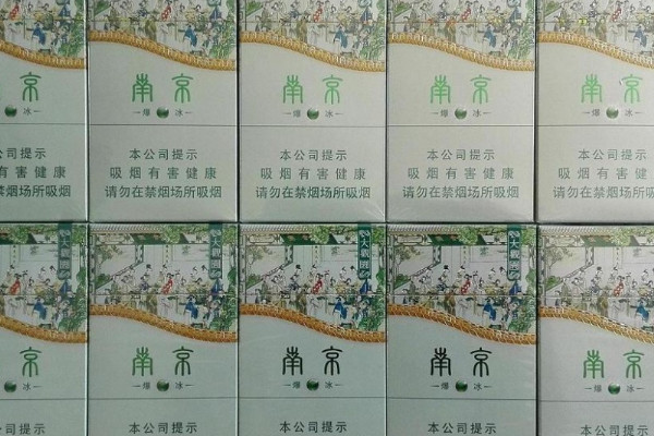 南京(大观园爆冰)包装以浅绿色为主色调,在烟盒上印有经典的文化图案,风格简约优雅,且烟支内含爆珠,捏碎后香味特别浓郁,不过到后端开始发苦。