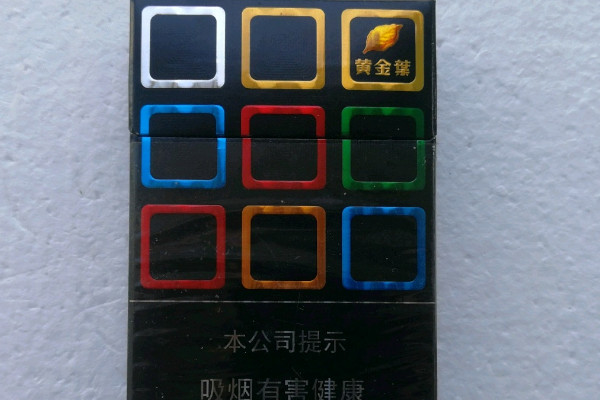 黄金叶(大M)的包装以黑色为主色调,在烟盒上设计有包装的彩色九宫格,整体风格简约优雅,而且烟支内含爆珠,捏碎后具有一股浓郁的橙子清香。