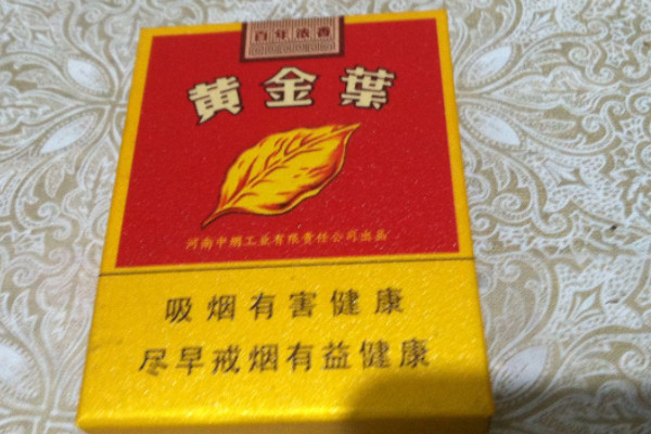 黄金叶(黄金眼)的包装以黄色为主,正面有很多黑色的圆点,且印有黄金叶标识,口感润滑醇厚,不辣口,后劲很大,香气复杂,有一种吸牛皮纸的感觉。