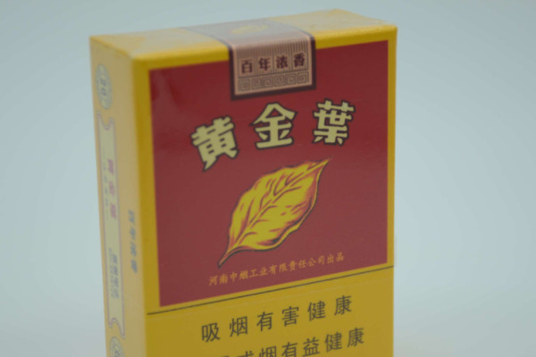 黄金叶(百年浓香)的包装以黄色为主,正面有一片红色的区域,印有黄金叶字样和烟草图案,烟气香甜浓郁,回味干净,带有一种果香味,虽然烟支短,但是很耐抽。