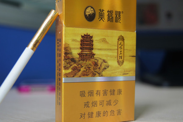 黄鹤楼(天下名楼)的包装以金色为主,正面印有黄鹤楼的风景画,在右侧的牌匾上印有天下名楼的字样,其口感平顺,不呛不辣,劲道较弱,味道淡雅,且烟气饱满。