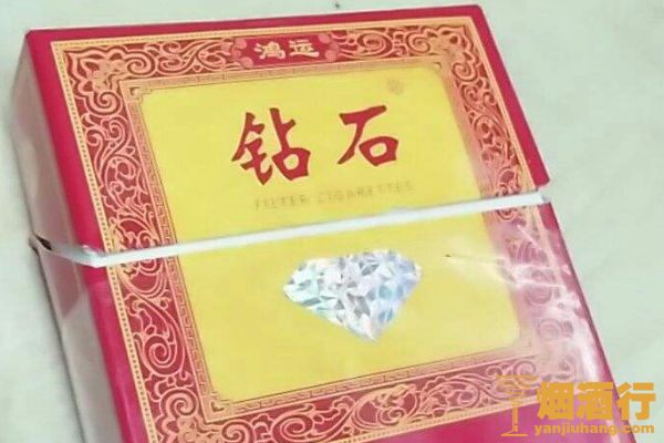 钻石(鸿运)的包装以红色为主,正面的黄色区域印有繁细的纹样和钻石标志,其口感舒适,味道香醇,且烟气饱满,回味干净,给人的满足感很强,是一款性价比很高的产品。