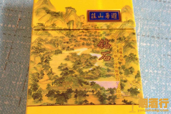 钻石(避暑山庄)的包装华丽精美,采用了黄色作为底色,正面印有风景画图案,其口感柔和,味道香甜,烟气纯正,抽起来非常的舒服,是一款很不错的香烟。