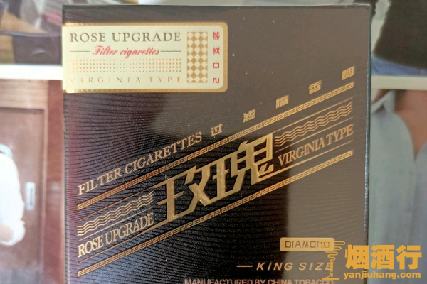 钻石(玫瑰2代)的包装以酒红色为底色,正面印有倾斜的金色条纹,其口感平和,烟气饱满,带有一股梅子香气,整体感觉非常不错,有着较高的性价比。