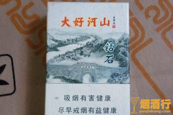 钻石(大好河山)的包装以白色为主,正面印有水墨画的图案,其味道醇和,劲道较足,给人的满足感很强,只是燃烧速度有点快,不太耐抽。